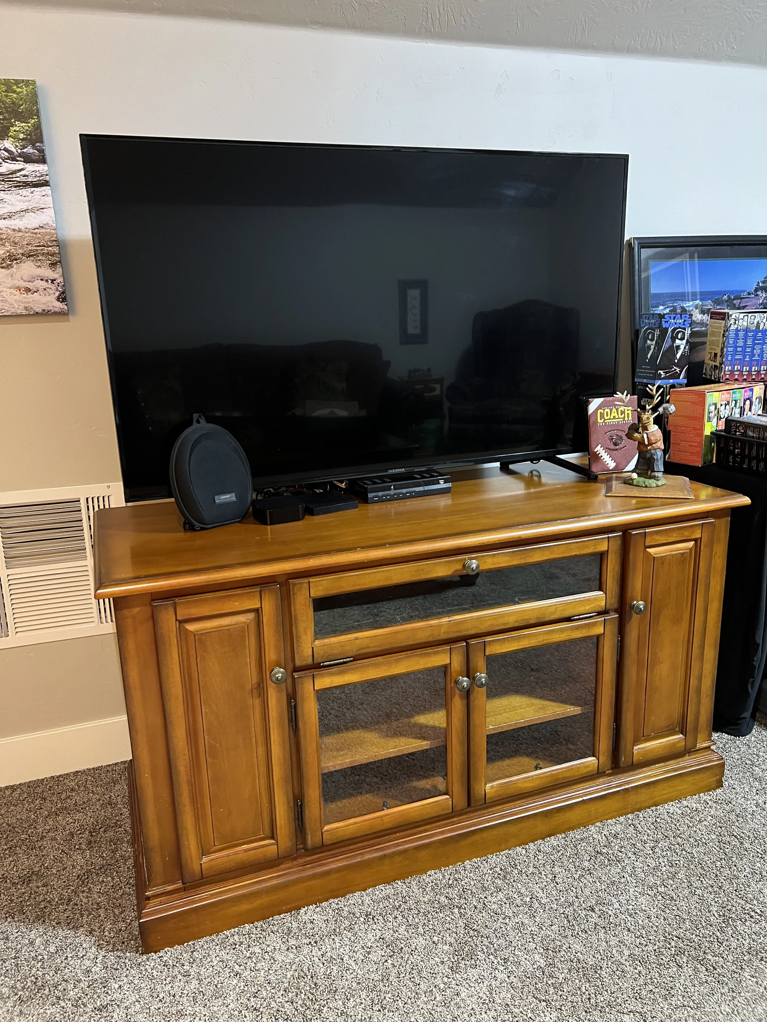 This is a lovely sale with vintage, modern home furnishings, queen bed, twin bed, dressers, headboards, nightstands, two sofas, side chairs, wind large sideboard, back chairs, end tables, coffee tables, book case cabinets, dining table and chairs, Vintage Secretary, Wine Press, mirrors, lamps, several copper pieces, kitchen full, several TV’s, electronics, Star Trek and Star Wars VHS, DVD’s, Yamaha Stereo Receiver and sound system, oak file cabinet, desk, entertainment cabinet, console table, clocks, Thomas Kincaide Art, home decor, men’s clothing, tools, ladders, Toro Snowblower, Toro Lawnmower, Air Compressor, two chainsaws, yard tools, tennis rackets, Camping, Fishing, Wrought Iron Garden Arch, Patio Set, Bistro Set, Potting Bench, Upright and Chest Freezer, Massage Table, Wellness Items, Garage Shelving, and more!